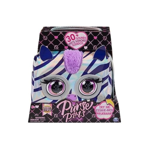 Εντυπωσίασε με το στιλ σου, με τα τσαντάκια-ζωάκια Purse Pets σε μεταλλικά χρώματα. Αυτά τα μοδάτα, διαδραστικά τσαντάκια-ζωάκια Purse Pets (το τέλειο δώρο για κάθε κορίτσι!) έχουν σούπερ προσωπικότητα. Ανταποκρίνονται στο άγγιγμά σου, ανοιγοκλείνουν τα μάτια τους και έχουν περισσότερους από 30 ήχους και αντιδράσεις. Η Rebel Stripez είναι υπέρ-αστραφτερή. Είναι φτιαγμένη από ασημί γυαλιστερό ύφασμα με ιριδίζουσες μοβ ρίγες, έχει χνουδωτή χαίτη, μάτια με ποπ αισθητική, επιμέρους στοιχεία σε μεταλλική απόχρωση και προσαρμόσιμο λουράκι για να το περνάς στον ώμο ή χιαστί. Στη βόλτα σας, το αγαπημένο σου τσαντάκι-ζωάκι Purse Pet ανοιγοκλείνει τα μάτια του και κάνει χαρούμενους ήχους καθώς αλληλεπιδρά μαζί σου. Κράτησέ την από το μέτωπο και θα ανοιγοκλείσει τα μάτια της γρήγορα, κάνοντας ήχους φωτογραφικής μηχανής. Πάρε πόζα σαν να είσαι στο κόκκινο χαλί και η Rebel Stripez θα ανταποκριθεί με ενθουσιασμό. Απαιτούνται 3 μπαταρίες ΑΑΑ, δεν περιλαμβάνονται. Τα διαδραστικά παιχνίδια Purse Pets είναι τέλεια δώρα για γενέθλια, για τα Χριστούγεννα ή ως δωράκι-έκπληξη για κορίτσια από 5 ετών. Συγκέντρωσέ τα όλα και δείξε το στιλ σου (καθένα πωλείται ξεχωριστά). Ζωντάνεψε το στιλ σου το τσαντάκι-ζωάκι Purse Pets Rebel Stripez σε μεταλλικό χρώμα.
