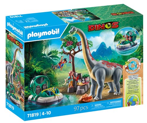 Το PLAYMOBIL Βραχιόσαυρος & Χόβερκραφτ προσφέρει μια μοναδική εμπειρία γεμάτη δράση και ανακαλύψεις. Το Χόβερκραφτ, σχεδιασμένο για αποστολές σε στεριά και νερό, χωράει δύο φιγούρες και διαθέτει τσουλήθρα διάσωσης για γρήγορη πρόσβαση στην περιπέτεια! Ο εντυπωσιακός Βραχιόσαυρος με τον κινητό λαιμό του μπορεί να βόσκει στα αποσπώμενα φύλλα, ενώ οι εξερευνητές ανακαλύπτουν κρυμμένους θησαυρούς, όπως μια λιβελούλα παγιδευμένη σε κεχριμπάρι.